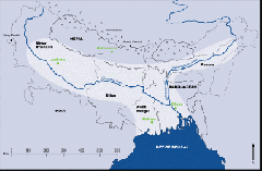 Landet består till allra största del av det delta som bildas av två stora floder vid Bengaliska bukten. En av dessa är Ganges. Vad heter den andra floden?
